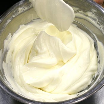 クリームチーズを柔らかくし、生クリームを少しずつ加え、溶きのばすように合わせます。
