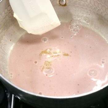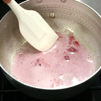 鍋に牛乳とお好みのフルーツピューレを入れひと煮立ちさせ、粗熱をとります(D)