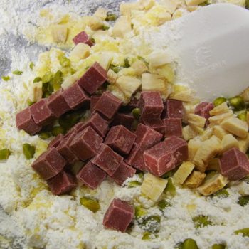 チャンクチョコやナッツなど、お好みの素材を加え混ぜます。