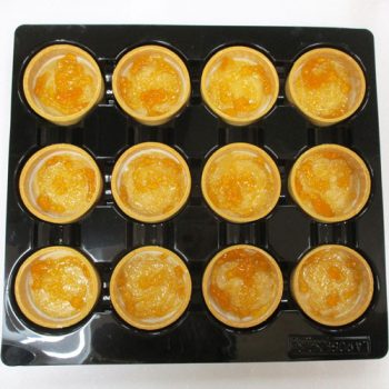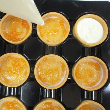 ・タルト生地にアプリコットジャムを均等に塗ります。