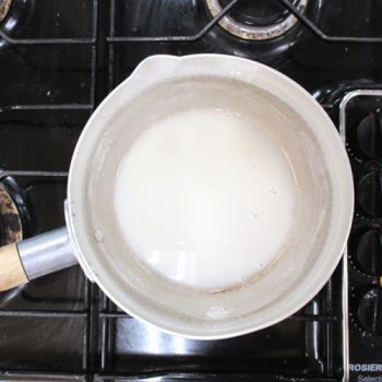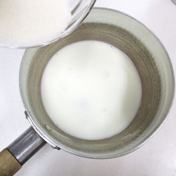 鍋に生クリームを入れて、そこへ混ぜ合わせたaを加えて混ぜます。