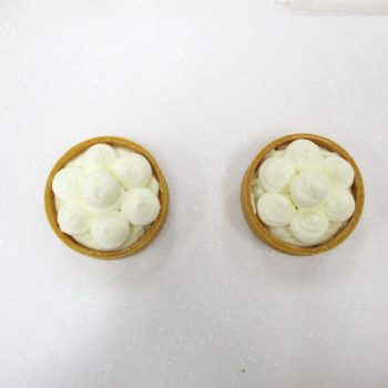 工程3)に工程5)を加えて全体をよく混ぜ、絞り袋に入れてタルト型に絞り入れます。