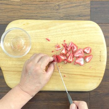 ルビーチョコレートをボウルに入れて、湯せんにかけます